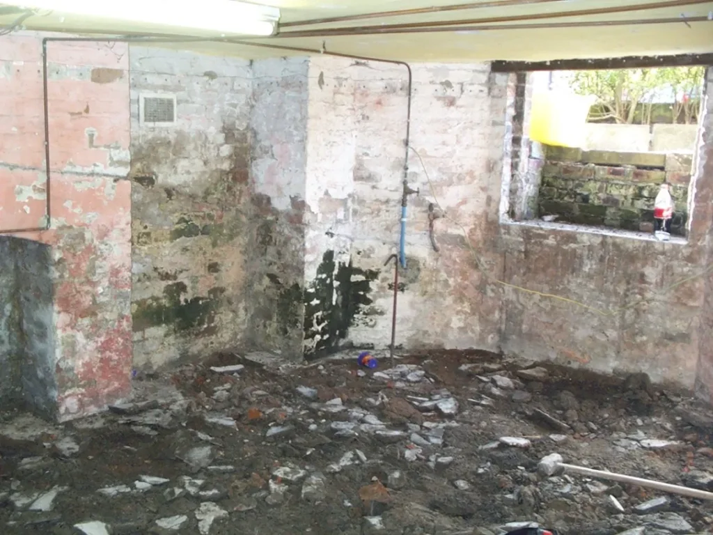 - An Aquadrain channel was installed around the perimeter at the floor-wall junction, an area prone to water ingress.