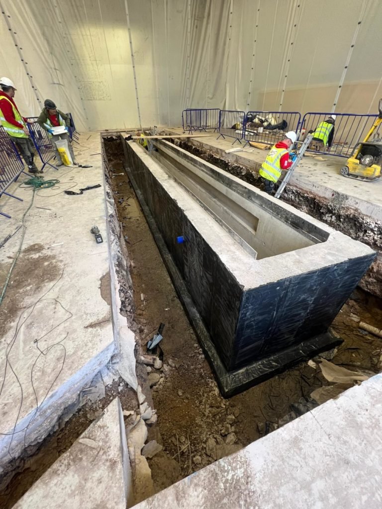 • Ground Conditions: Challenging sub-ground conditions required precise engineering to ensure the long-term performance of the waterproofing system.